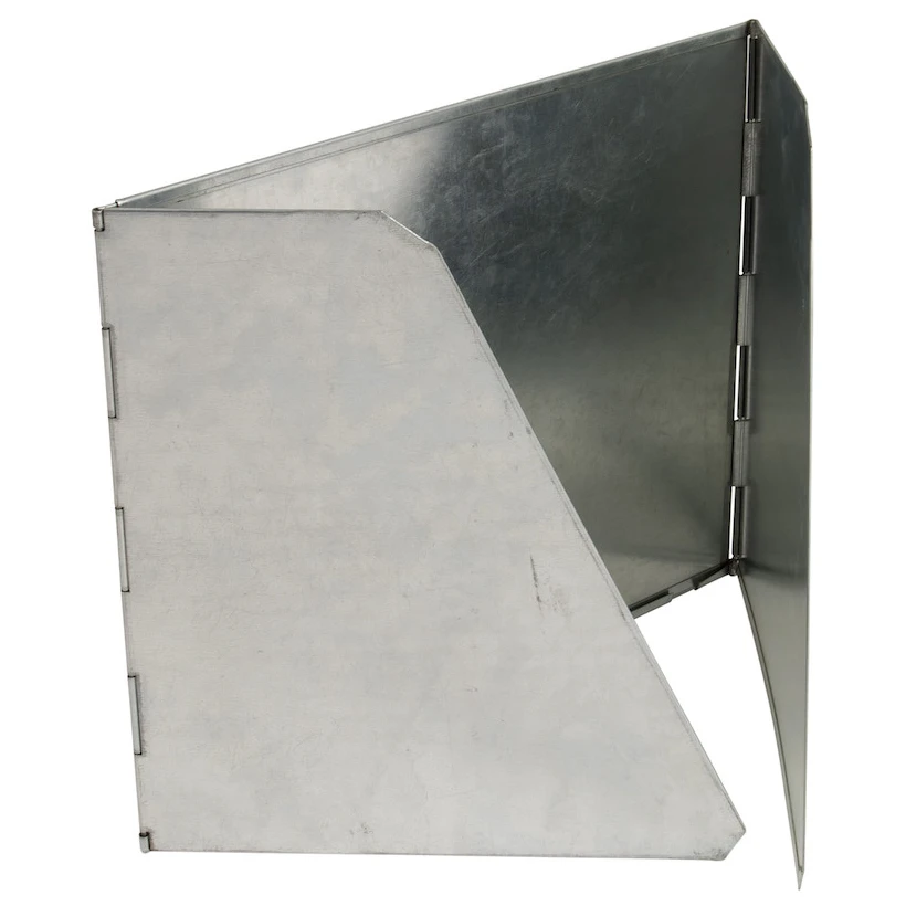 Това напълно прибиращо се и лесно сгъваемо ветрозащита е идеално за използване с къмпинг котлони или газови горелки. Предпазва пламъка от загасване, като същевременно помага за по-добро насочване на топлината към тигана или тенджерата, което съкращава времето за готвене. Ширината може лесно да се регулира от 38 до 70 см според нуждите. Благодарение на вендузите лесно ще го закрепите към повечето повърхности и след употреба бързо ще го сгънете до компактен размер.