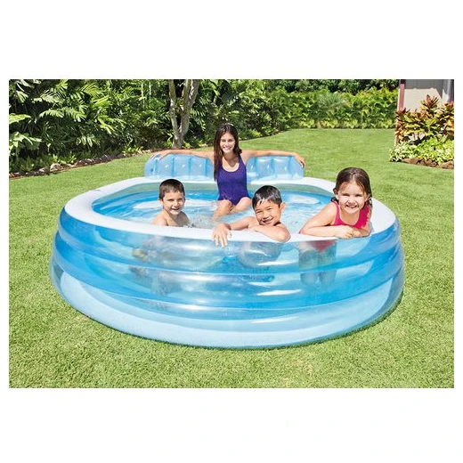 Басейнът Intex Swim Centre Family Lounge има овална форма с две въздушни камери. Удобната вградена седалка с облегалка е подходяща за родителите, за да наблюдават децата си удобно. От всяка страна на басейна има поставка за напитки. Дъното има клапан за лесно източване на басейна, който е изработен от висококачествен и издръжлив винил с дебелина 0,33 мм. Обемът на водата при височина на повърхността от 30 cm е 590 литра. Подходящ за деца на възраст над 3 години.