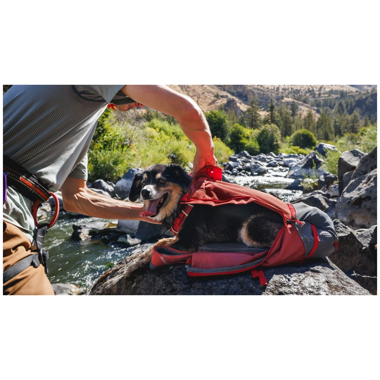 Раница за куче Ruffwear Hitch Hiker™ Dog Backpack Carrier позволява сигурно пренасяне на кучето на гърба на собственика. Това ще оцените в моменти, когато трябва да преодолеете трудни технически участъци в планината като виа ферата, да преминете с колело участъци, които не са подходящи за кучето, но също така е подходящо за собственици на кученца или кучета-ветерани, които изминават по-кратко разстояние.