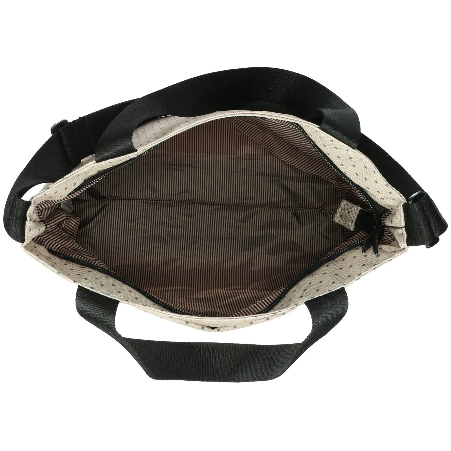 За лесна организация чантата има и външен джоб с цип, където можете да съхранявате неща, които трябва бързо да намерите, и вътрешен джоб с цип за безопасно съхранение на ценности. Регулируемата презрамка позволява удобно носене през рамо или през тялото, докато здравите дръжки от лента дават възможност да я носите и в ръка.