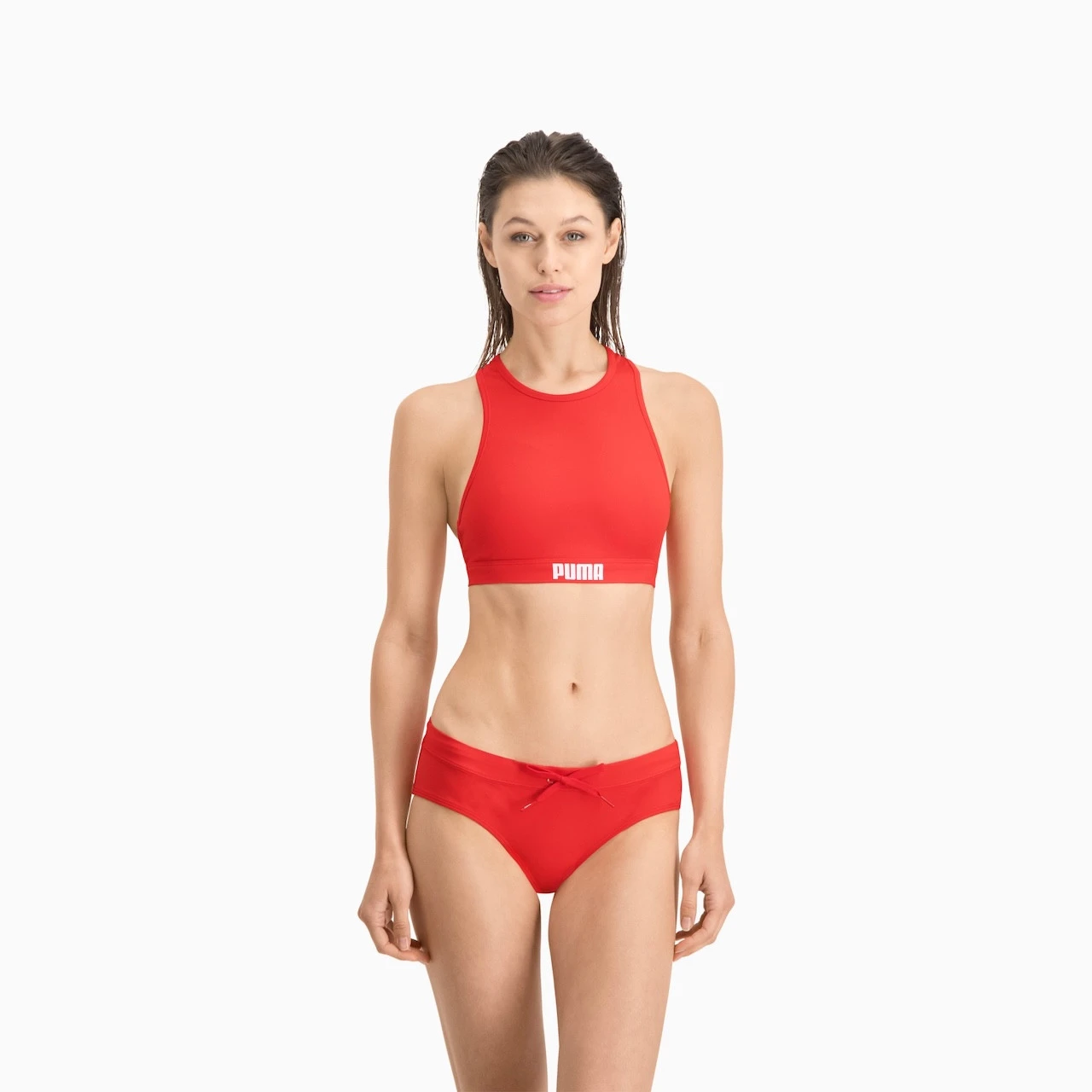 Горната част на дамски бански костюм с изрязан гръб от марката PUMA ще ви предложи не само страхотен външен вид, но и максимален комфорт. Тяхната спортна кройка е модерна и практична, независимо дали се насочвате към басейна, за интензивни спортни дейности или просто за релакс на одеялото.
