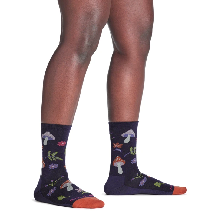 Дамски чорапи Shroom Bloom Crew Lightweight са с височина crew и достигат около 15,5 см над стандартната обувка, което отговаря на дължина 21,5 см от петата до горния ръб. Ергономичната кройка прилепва плътно към крака, не се набира и не се плъзга, като по този начин осигурява максимален комфорт през целия ден.