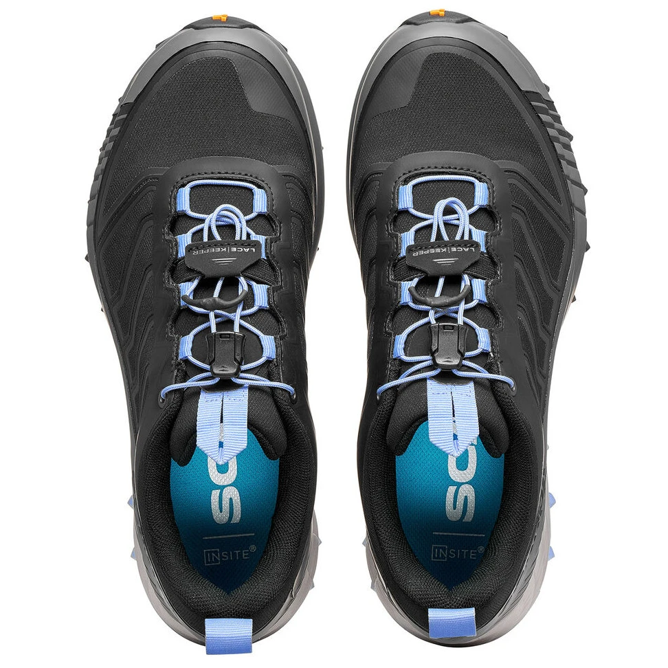 Горната част на обувката е изработена от високо дишаща и устойчива мрежа. Тя е допълнена отинтегрирана система SCARPA EXO, която създава въображаем външен скелет и осигурява на ходилата ви страхотна странична опора. Ключов елемент е иновативната технология 3S FRAME, която напълно обгръща структурата на обувката. Тази система предпазва ходилото от грубостта на терена и осигурява върховна подкрепа, особено в труден терен, който е типичен за планинското бягане.