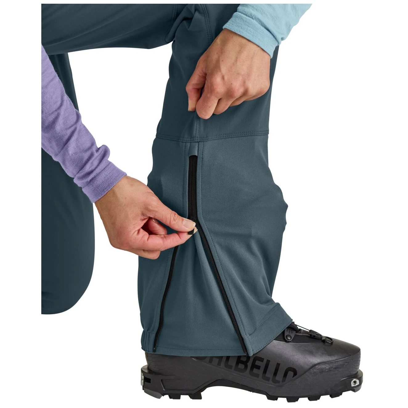 Панталоните са със спортна кройка и функционални детайли, предназначени за ски алпинизъм: анатомично оформени колена, защита Schoeller® срещу остри ръбове на ски, регулируеми маншети на глезените, цип на крачолите за адаптиране към обувки, висок колан със заден еластичен панел и практичен джоб отстрани, а безшумният гумен ръб отвътре предотвратява изместването на панталоните по време на движение.
