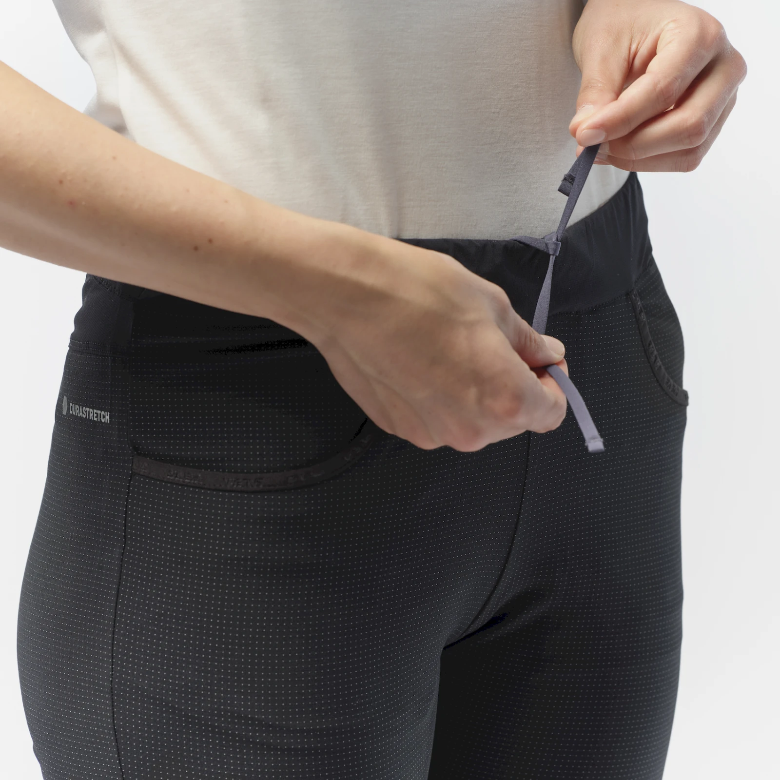 Еластичната вложка и ергономични колене с високоеластична подложка допълнително допринасят за максимална свобода по време на катерене. По време на неблагоприятни метеорологични условия ще оцените обработката на повърхността DWR C6, което увеличава водоустойчивостта. Други характеристики на панталона включват плоска еластична талия с връзка, подгъв с вграден цип, два плоски джоба отпред и светлоотразителна щампа.