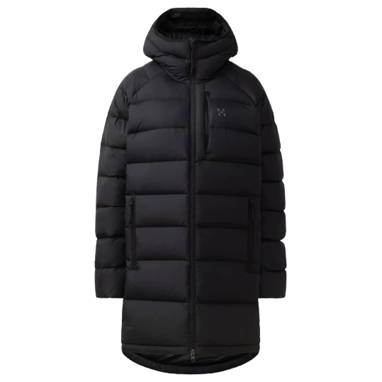 Дамската пухена парка Haglöfs Rosson Down Parka е проектирана за ежедневно носене и дейности на открито в студено време, осигурявайки топлина и комфорт. Външният материал е устойчив Pertex® Quantum ripstop от 100% рециклиран полиестер, който е обработен с водоотблъскващо покритие без PFC. Основната изолация е от 600 CUIN пух (80% патешки мек пух, 20% патешки твърд пух), сертифициран по стандарта Responsible Down Standard (RDS) и одобрен от организацията bluesign®. В зоните, податливи на износване, като качулката и раменете, е добавена синтетична изолация Mimic Silver от рециклиран полиестер с грамаж 100 g/m², която запазва топлината дори когато е влажна.