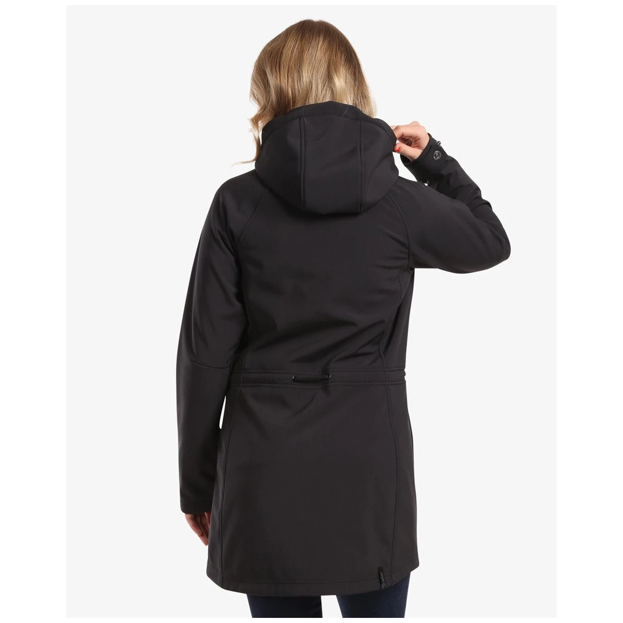 Якето е изработено от устойчив софтшел материал с мембрана, която ще ви предпази от вятър и лек дъжд. Просторната качулка с контрастна подплата може лесно да се регулира с помощта на връзки. Основният цип е покрит с платка, за да не ви духа вятър, а ръкавите могат да се регулират с метални копчета. Благодарение на пристягането в талията, якето елегантно подчертава женския силует, а двата джоба с цип осигуряват практично място за дребни предмети.