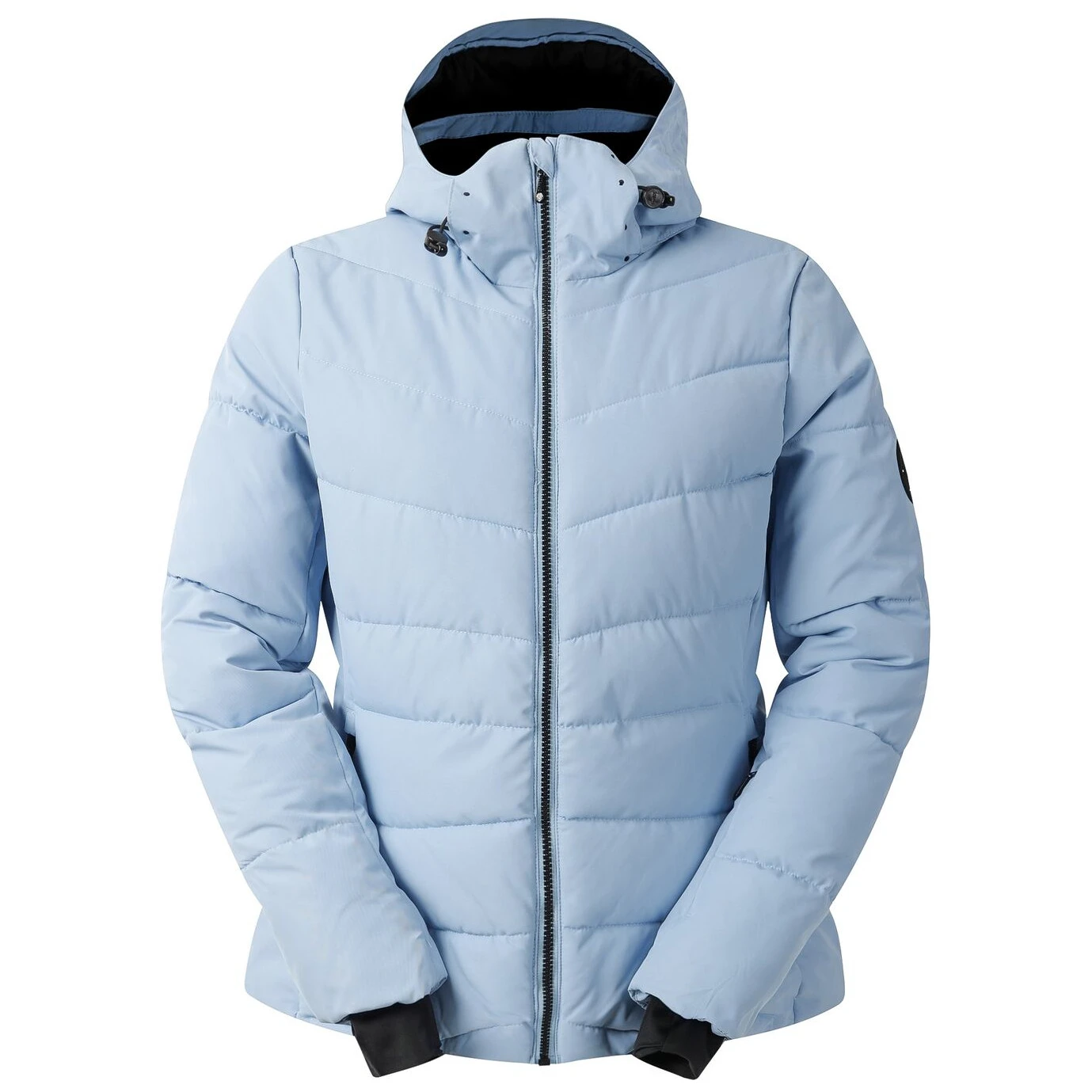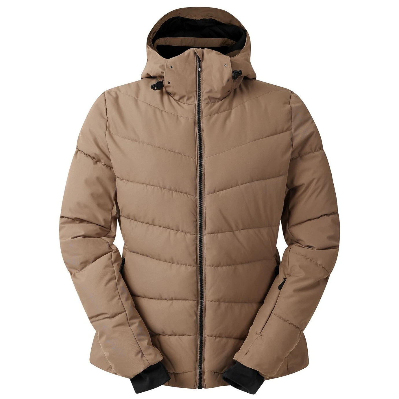 Якето е с подвижна качулка с регулиращи ленти, топли вътрешни маншети на ръкавите, регулируем подгъв и практични вътрешни джобове, включително мрежест джоб с кърпичка за почистване на очила. Детайлите за ски включват джоб за ски карта и фиксиран снежен колан, което гарантира комфорт и безопасност на пистата.