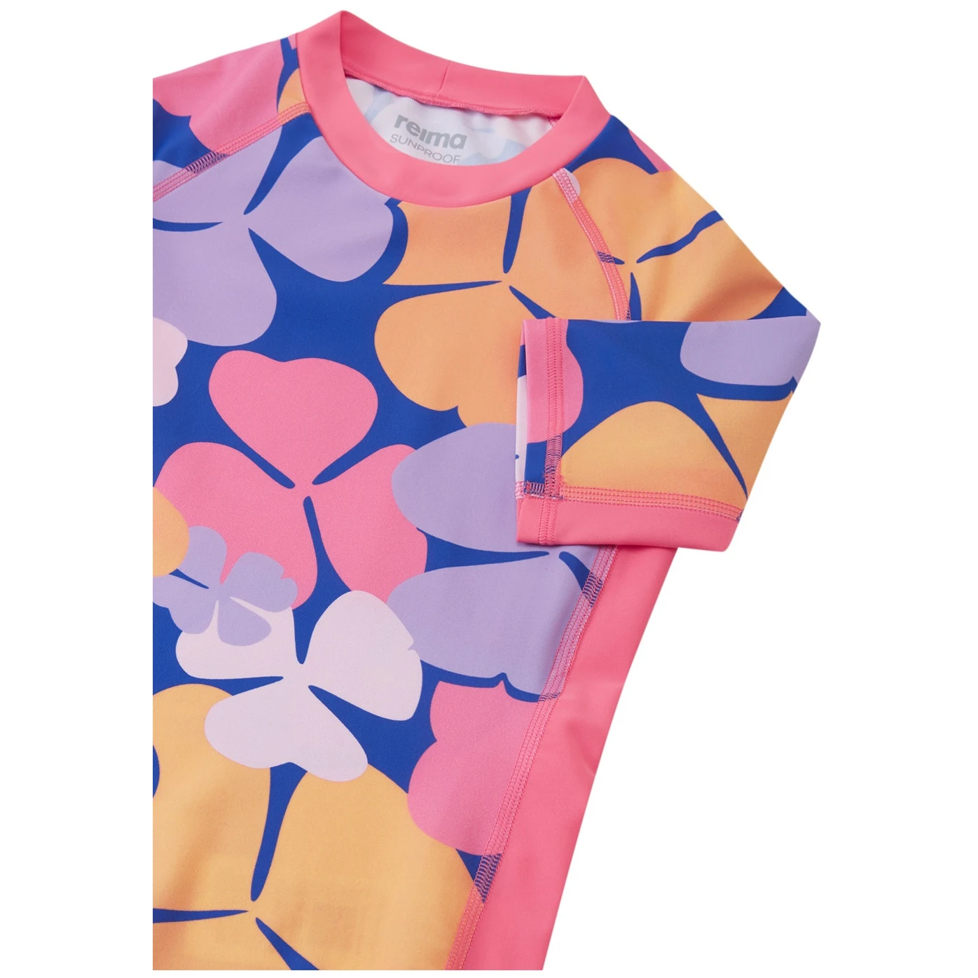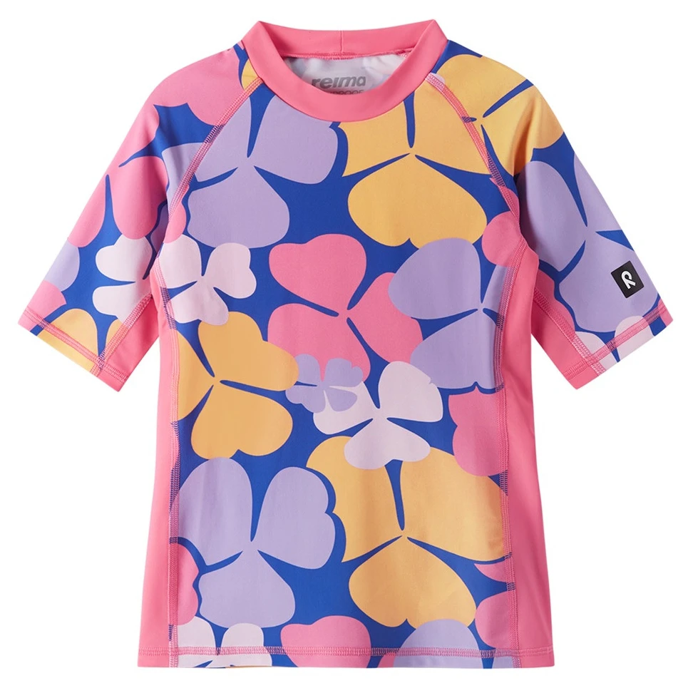 Детска тениска Joonia на марката Reima е проектирана за безопасно и удобно движение на слънце, край вода и при спорт. Изработена е от гъвкава материя SunProof+ jersey, която съдържа 80 % рециклиран полиамид и 20 % еластан, благодарение на което тениската е лека, еластична и приятна на допир. Материята осигурява UV защита 50+ според норма EN 13758-1 +A1 и предпазва кожата от UVA и UVB лъчение.