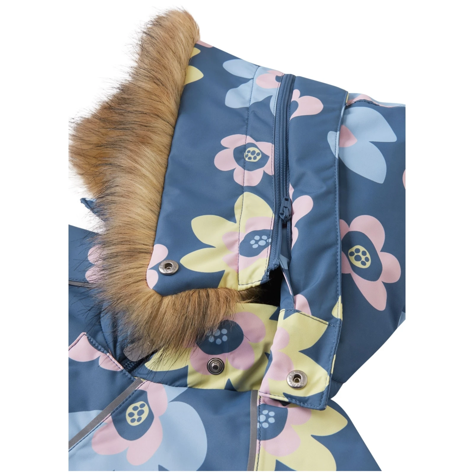 Регулируемата качулка се закопчава с капси, така че да е сигурна и да се сваля лесно, ако се закачи за нещо. Край качулката има подвижен кант от изкуствена кожа. Издръжливите силиконови примки за краката поддържат глезените ви топли, а гащеризона - на място. Този гащеризон е идеалният избор както за зимни забавления, така и за разходки из града!