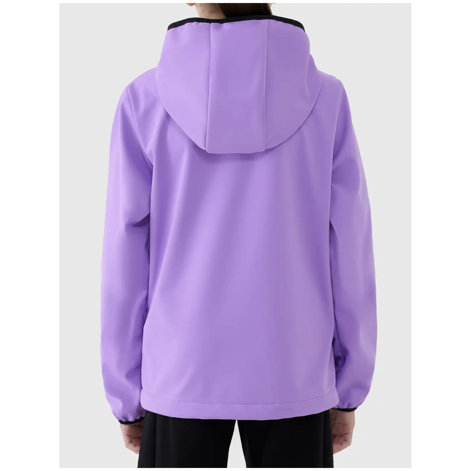 Практично момичешко яке 4F Softshell jacket F373 съчетава издръжливост и комфорт. Благодарение на мембраната NEO DRY с параметри на воден стълб 5 000 mm и дишаемост 3 000 g/m²/24h, осигурява защита от лек дъжд и вятър, като същевременно остава дишаща и удобна при движение. Якето има интегрирана профилирана качулка, два джоба с цип и ръкави с еластичен маншет за по-добро прилягане.