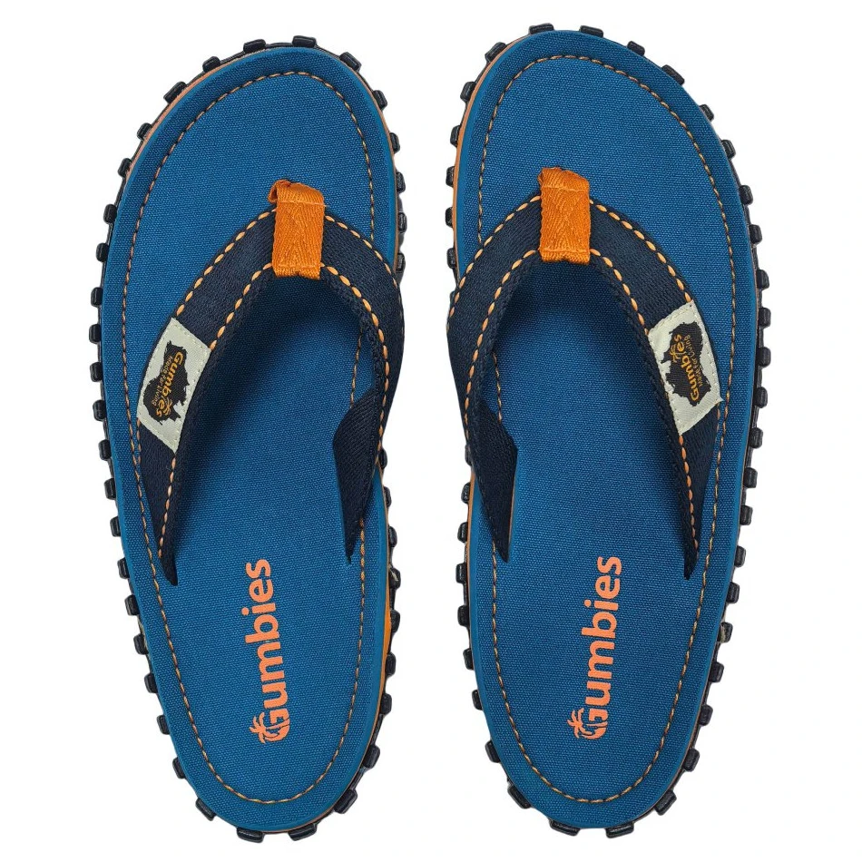 Дизайнерските джапанки Gumbies Трицветно синьо са весели, игриви, удобни и екологични.