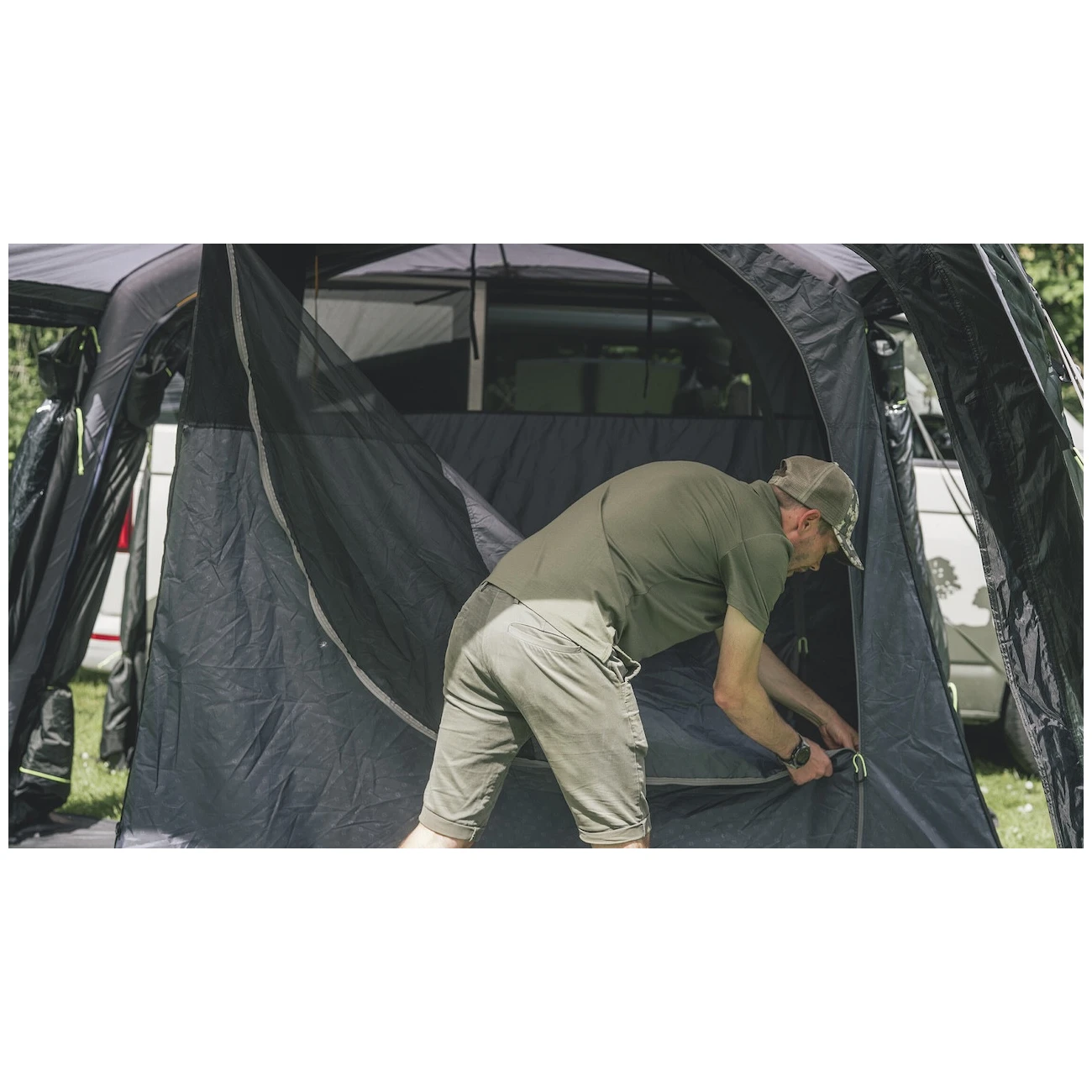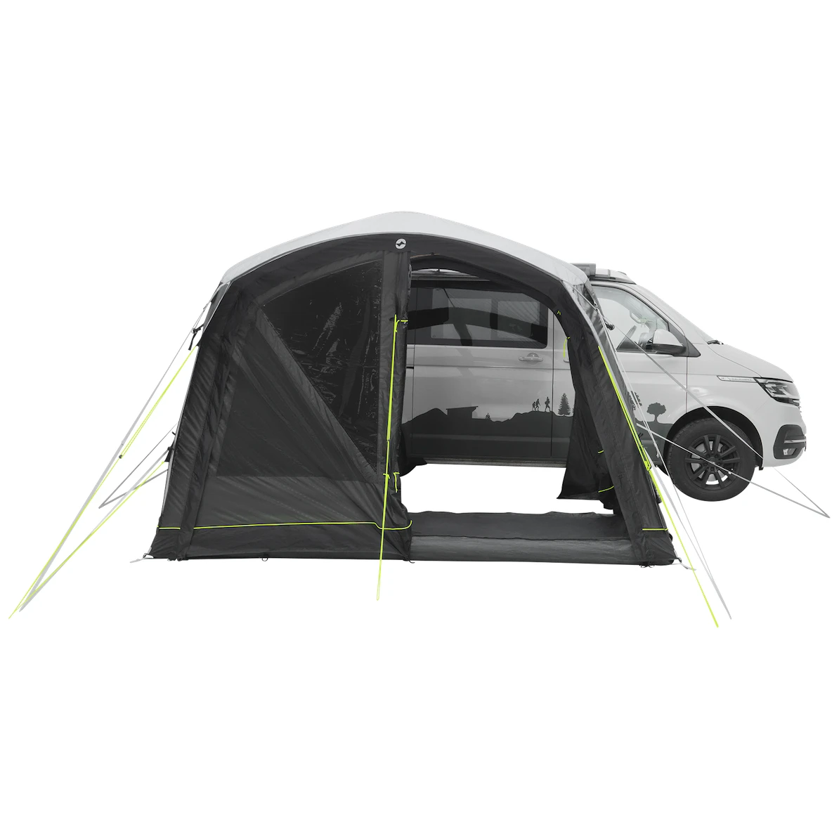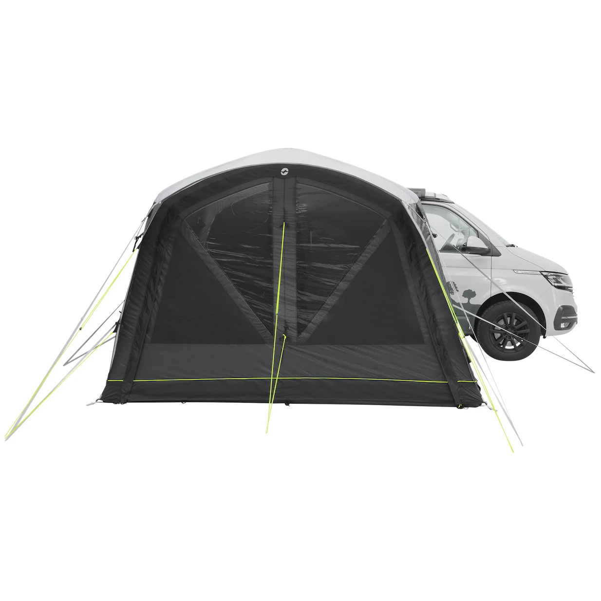 Към палатката води основният голям безбариерен вход с мрежа против комари. Може да се разкопчае напълно настрани, така че да не пречи, или да се отвори само отгоре за допълнителна вентилация. Още два странични входа един срещу друг позволяват пълно отваряне на палатката. Големите затъмнени прозорци осигуряват много светлина, но също така защита от UV лъчите и неприкосновеност на личния живот. Могат да се затворят със завеси и да затъмнят пространството за по-добър сън.