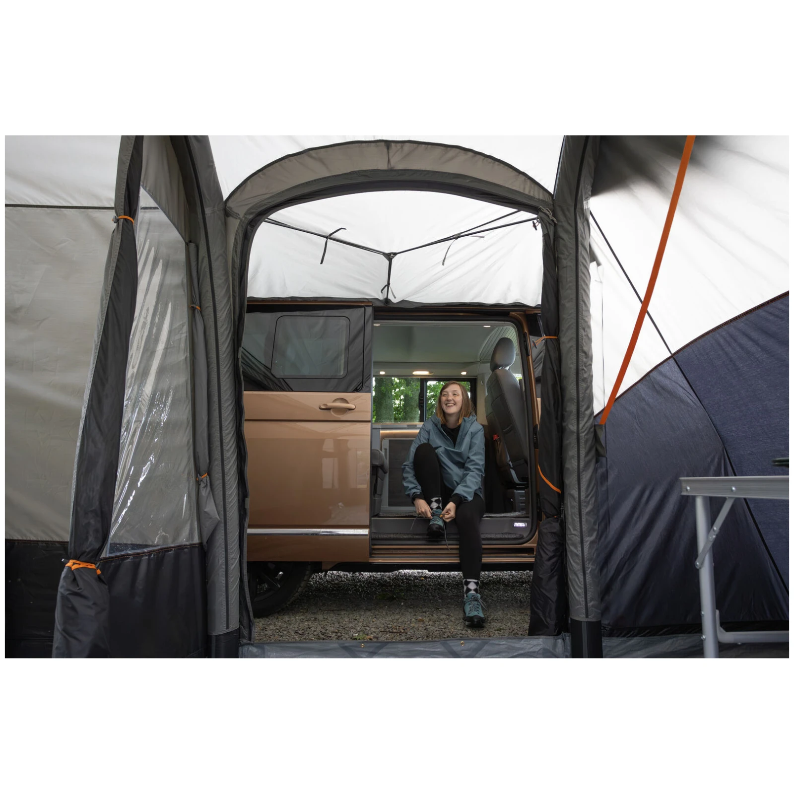 Ново е системата TriSpan Tunnel Support, която увеличава здравината на тунела, подобрява опората при автомобила и създава по-отворено и по-добре използвано пространство. Издърпващият се свързващ тунел позволява лесно откачане на предния навес чрез системата Drive Away, така че маркизата остава на място, докато вие потеглите на пътешествие.
