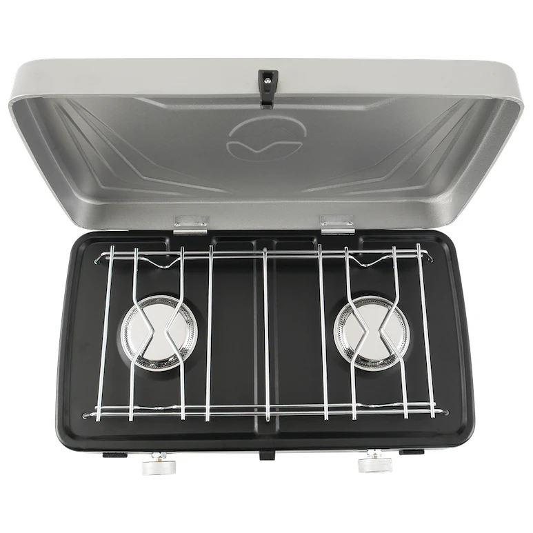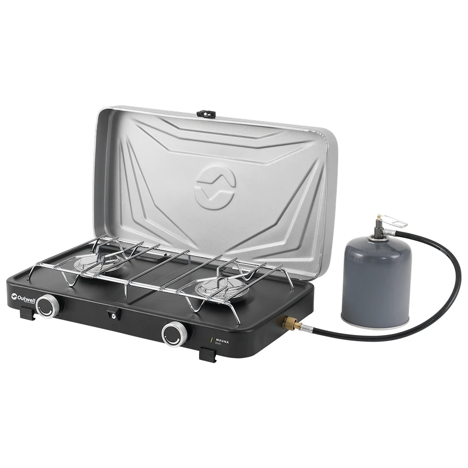 Двугорищна газова печка Mauna Duo от датския производител Outwell е незаменим помощник за къмпинга и градината. Материал от стомана и неръждаема стомана гарантира дълъг живот. Конструкцията е ниска, много стабилна, с пластмасови крачета, а горелките са снабдени с широка решетка за безопасно поставяне на съдове. Печката има здрав капак, с чиято помощ лесно ще я опаковате в куфар, което я прави лесна за пренасяне.