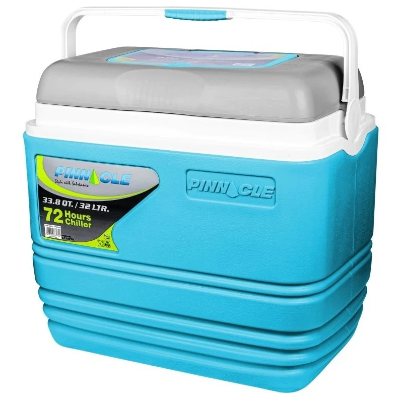 Хладилната кутия Primero 32L от марката Pinnacle е запълнена с 20 mm дебела полиуретанова пяна, която осигурява отлична топлоизолация и благодарение на това ще запази вашите напитки и храни студени/топли в продължение на много часове. Леката конструкция и меките дръжки осигуряват лесно пренасяне дори на по-дълги разстояния. Капакът на кутията може да служи като работна повърхност или масичка с удобни места за напитки, благодарение на които кутията или чашата няма да се преобърнат. Изработена от висококачествена пластмаса без BPA, която е лесна за поддръжка и безопасна за контакт с храни.