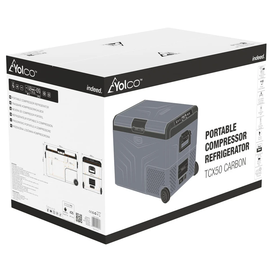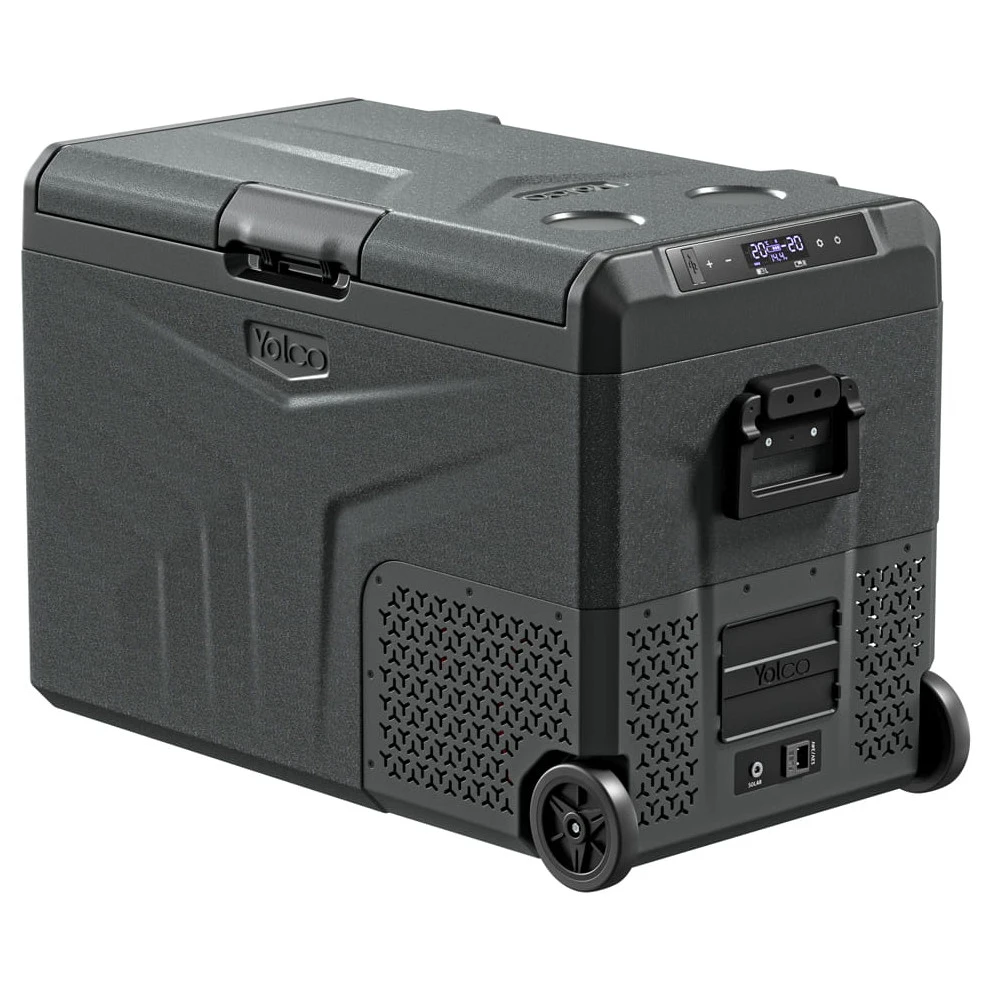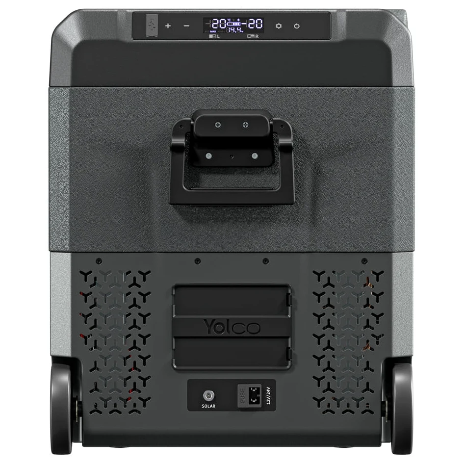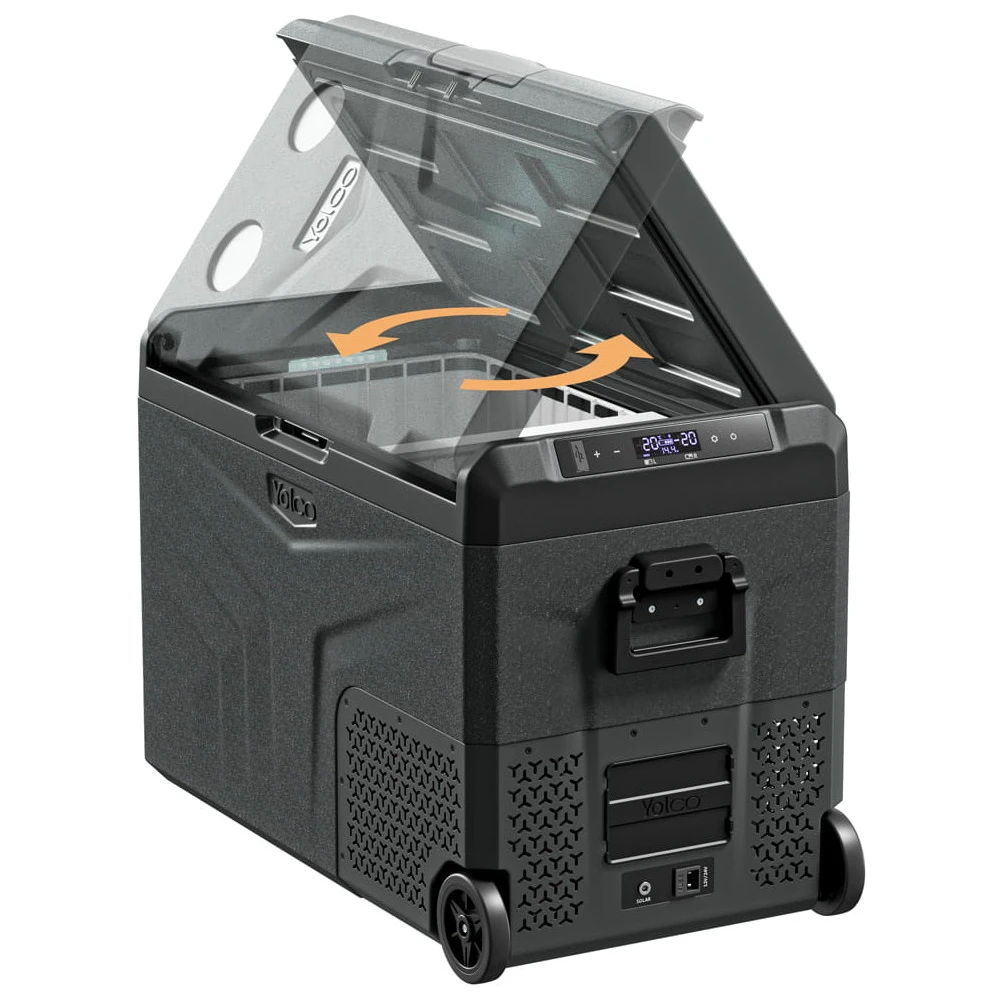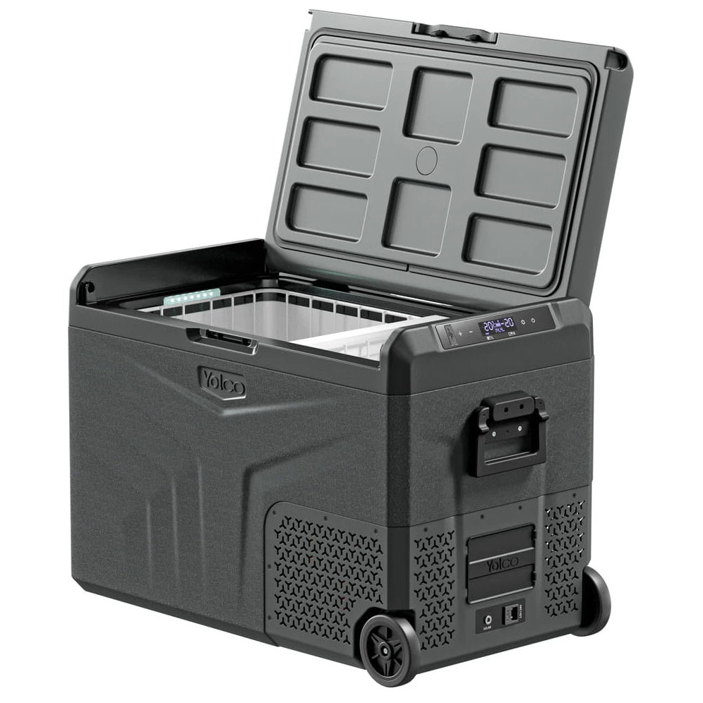 Yolco TCX50 е мощен преносим компресорен хладилник с капацитет до 52 литра. Предлага две отделни камери с индивидуално регулируема температура, благодарение на което можете едновременно да охлаждате и замразявате хранителни продукти според нуждите. Подвижната преграда допълнително позволява лесно приспособяване на вътрешното пространство.