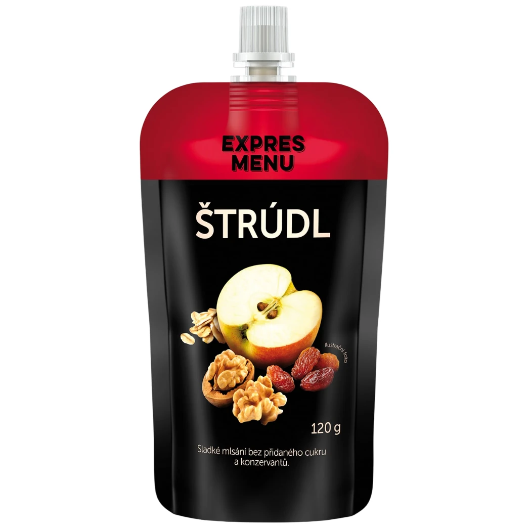 Ситно смляна паста от пресни ябълки, орехи и стафиди е закуска от менюто Expres. Сладко лакомство без добавена захар и консерванти. То ви дава енергия и можете да похапвате без угризения.