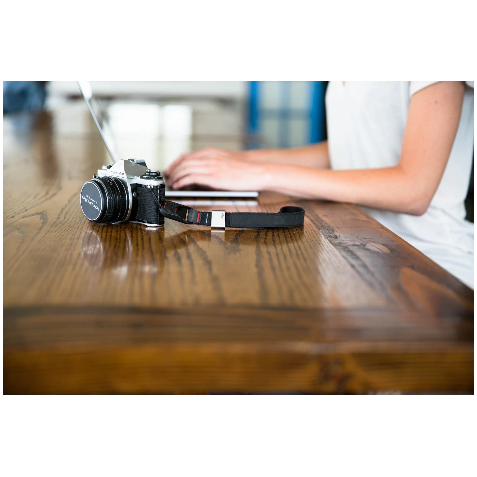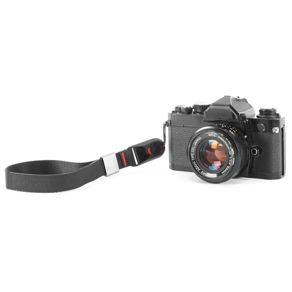 Каишката може да бъде настроена в отворена позиция или да бъде затегната около китката за максимална сигурност. След като откачите фотоапарата, можете да го носите като гривна, така че винаги да имате каишката под ръка. Новите анодизирани компоненти от дурал и подобрените котви осигуряват лесна и бърза употреба с една ръка, висока издръжливост и дълъг живот.