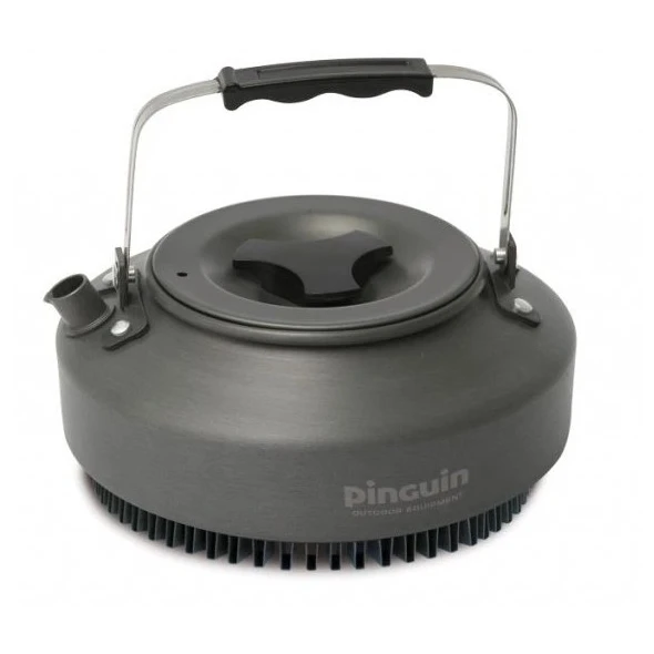 Компактен туристически чайник Pinguin X-Kettle S с топлообменник от закален алуминий и с капак със сгъваема дръжка с обем 0,7 л. Повърхността е с анодизиран слой с огнеупорно и устойчиво на износване покритие.