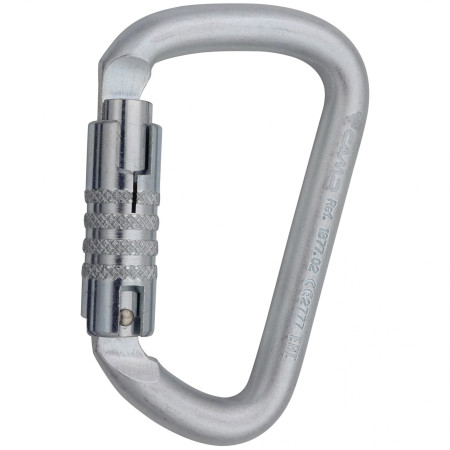 Изключително здрав и издръжлив стоманен карабинер Keylock "D" с автоматично 3-позиционно заключване 3Lock. Заключването 3Lock (тройно заключване ) изисква три движения за отваряне - разтягане, завъртане, накланяне. Ключалката може лесно да се отвори с една ръка или с ръкавица. Въпреки това е добре да практикувате тези три движения предварително у дома. Този карабинер има надлъжна якост от 50 kN.