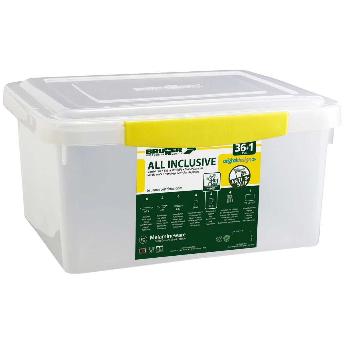 All Inclusive Space от Brunner е изключително издръжлив и стилен комплект съдове за 36 части, който включва всичко необходимо за перфектно къмпинг изживяване.