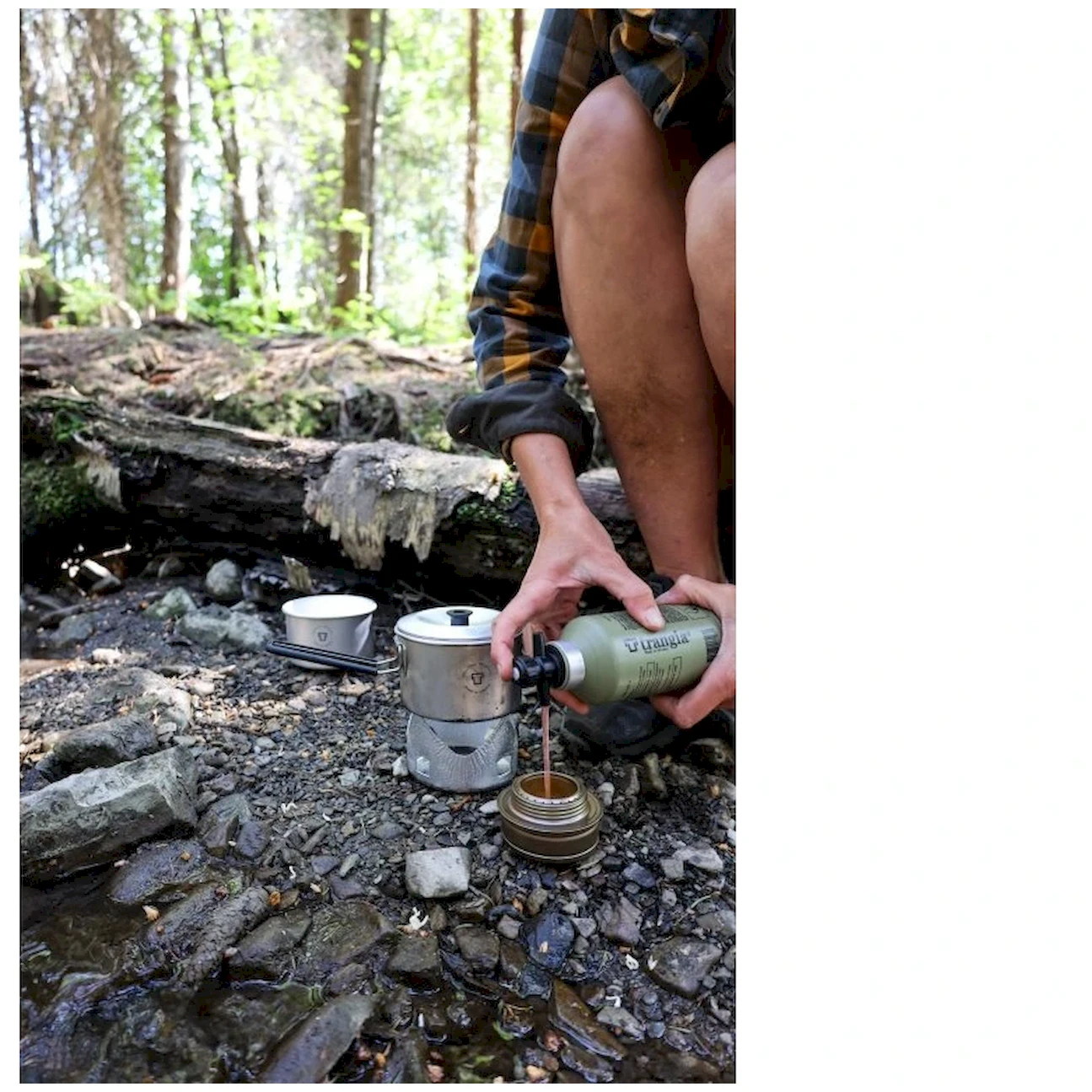 Комплектът включва чаша T-Cup с капак, сгъваема дръжка, ветробран и спиртен котлон. Това е идеалното решение за приготвяне на бърз обяд, който да споделите с приятел, или за соло авантюристи. В сгънато състояние всички части се побират в чашата T-Cup и дръжката се затваря гладко върху капака. Съхранявайте пластмасовата дръжка далеч от пряк пламък.