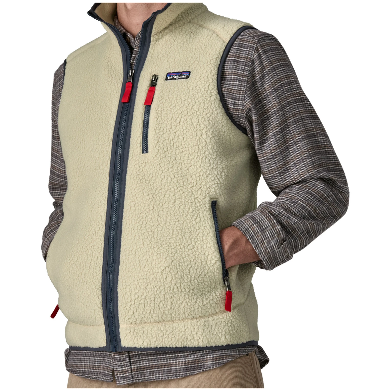 Елекът е оборудван с практични джобове с цип, които безопасно съхраняват дребни предмети или топлят ръцете. Ретро визията се допълва от контрастни детайли и качествена изработка, типична за марката Patagonia.