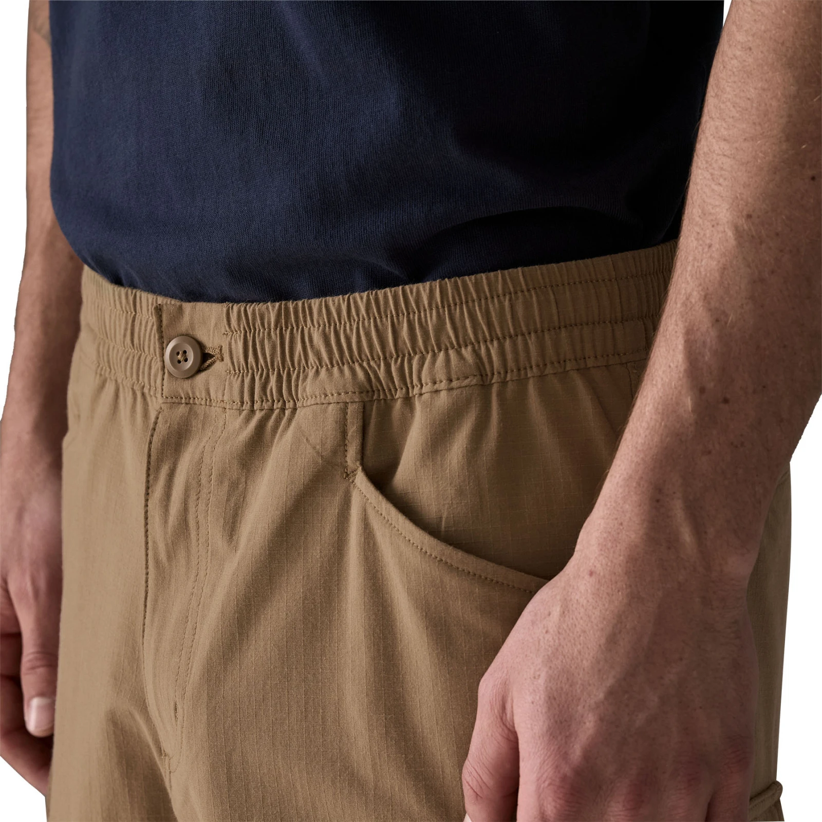 Издръжливият рипстоп материал с добавка на еластан осигурява четирипосочна еластичност за максимална свобода на движение. Благодарение на комбинацията от органичен памук и рециклиран полиестер, шортите са приятни на допир, като същевременно са здрави и бързосъхнещи.
