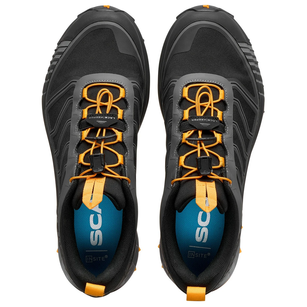 Основата на горната част е конструкцията Sock-Fit LW, която се характеризира с лека и супер дишаща мрежа с термично формовани подсилвания, които гарантират, че кракът е здраво обвит и същевременно осигурява отличен комфорт и гъвкавост в областта на глезена, езика и предната част на крака. Благодарение на това обувката приляга перфектно, поддържа и не притиска никъде. Вътре се крие водоустойчива, но същевременно дишаща мембрана GORE-TEX® Invisible Fit, така че краката ви винаги ще останат сухи. Бързото и лесно обуване е гарантирано благодарение на самозаключващата се система за връзване Fast Lacing System, която позволява на гъвкавата връзка бързо да се плъзга и по този начин перфектно да фиксира крака вътре в обувката. Междинната подметка от EVA пяна със средна плътност осигурява леко омекотяване и абсорбиране на ударите. Подметката SCARPA PRESA® е изработена от високоефективен гумен материал с 4 mm drop и 6 mm грайфер и с отлично сцепление на суха и мокра повърхност.