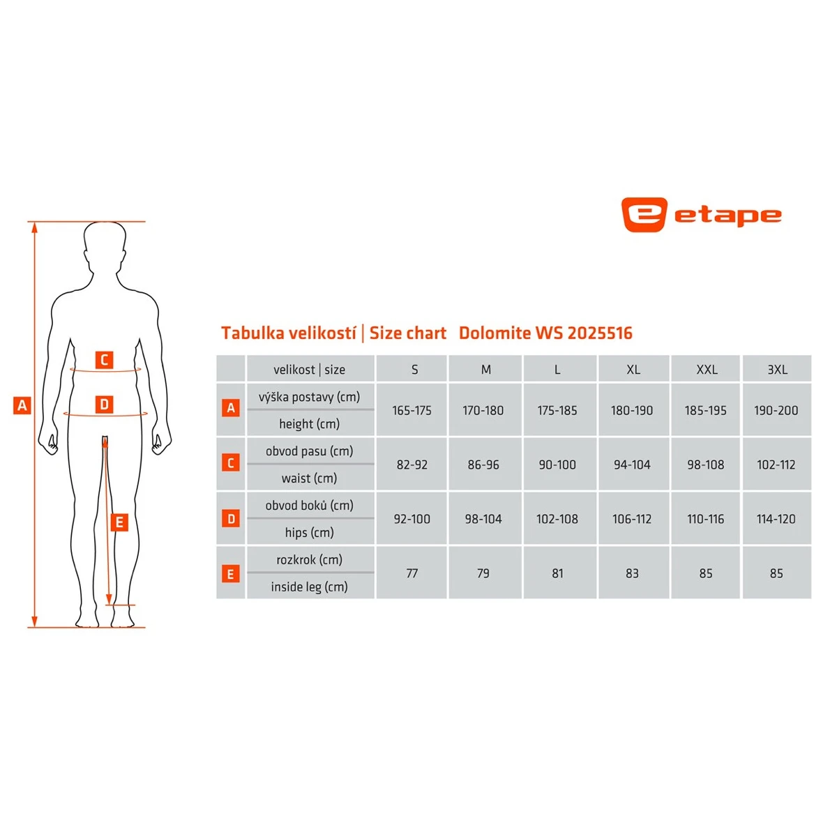 Марката Etape предлага богата колекция от дрехи за колоездене, бягане и ски. Благодарение на най-новата технологии на материалите, най-добрата кройка и модерен дизайн, колекцията е подходяща както за любители спортисти, така и професионалисти. Акцентът се поставя върху функционалността, качествената изработка и привлекателния дизайн. Марката обръща максимално внимание на избора на подходящи функционални материали както и на перфектното подбиране на кройката. При каските и протекторите за гръбначния стълб безопасността и удобството са на първо място.