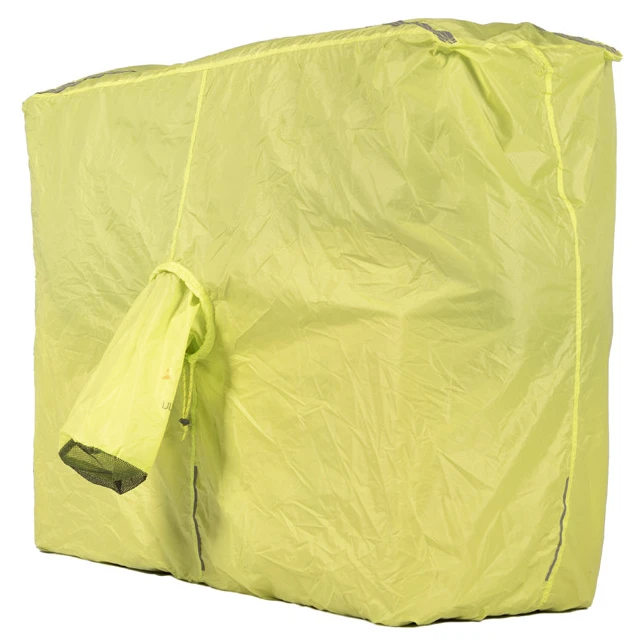 Мрежест вентилационен отвор помага за намаляване на кондензацията и подобрява въздушния поток. Основата със стягащ шнур задържа топлината вътре и повишава защитата от неблагоприятни метеорологични условия. Интегрираната чанта позволява бързо опаковане дори при трудни условия, без риск от загуба на опаковката. Огнеупорните материали отговарят и надвишават стандарта за безопасност Европейския EN5912, което повишава общата безопасност при употреба.