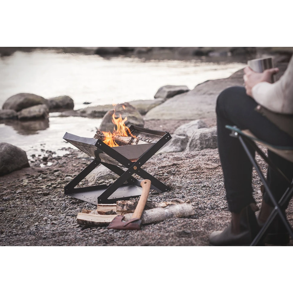 Благодарение на преносимата и сгъваема камина Kamoto от Primus можете да запалите огън почти навсякъде. Дори и там, където не е желателно да влиза в контакт със земята.