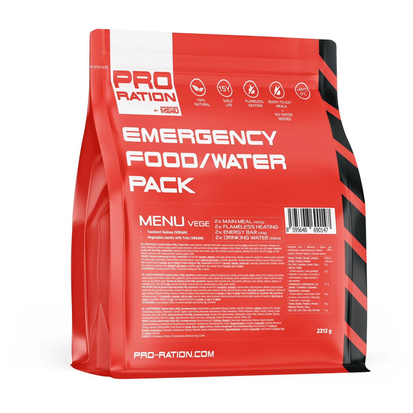 PRO-RATION Emergency Pack MENU е резултат от повече от двегодишно сътрудничество с чешките спасителни служби. Този компактен пакет ви осигурява качествена храна и питейна вода в критични моменти с трайност до 15 години за храната и 50 години за водата.
