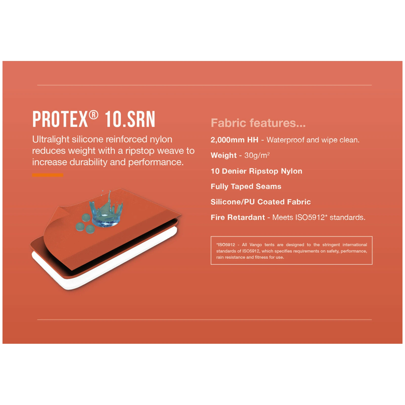 Външната палатка е изработена от ултралек найлон Protex® 10D ripstop, обработен със силикон и PU, предлага воден стълб от 2 000 мм и е 100% без PFC. Подложката от рипстоп найлон 20D с воден стълб от 6 000 мм и повдигнат борд от 10 см осигурява надеждна защита от влага дори при неблагоприятно време.