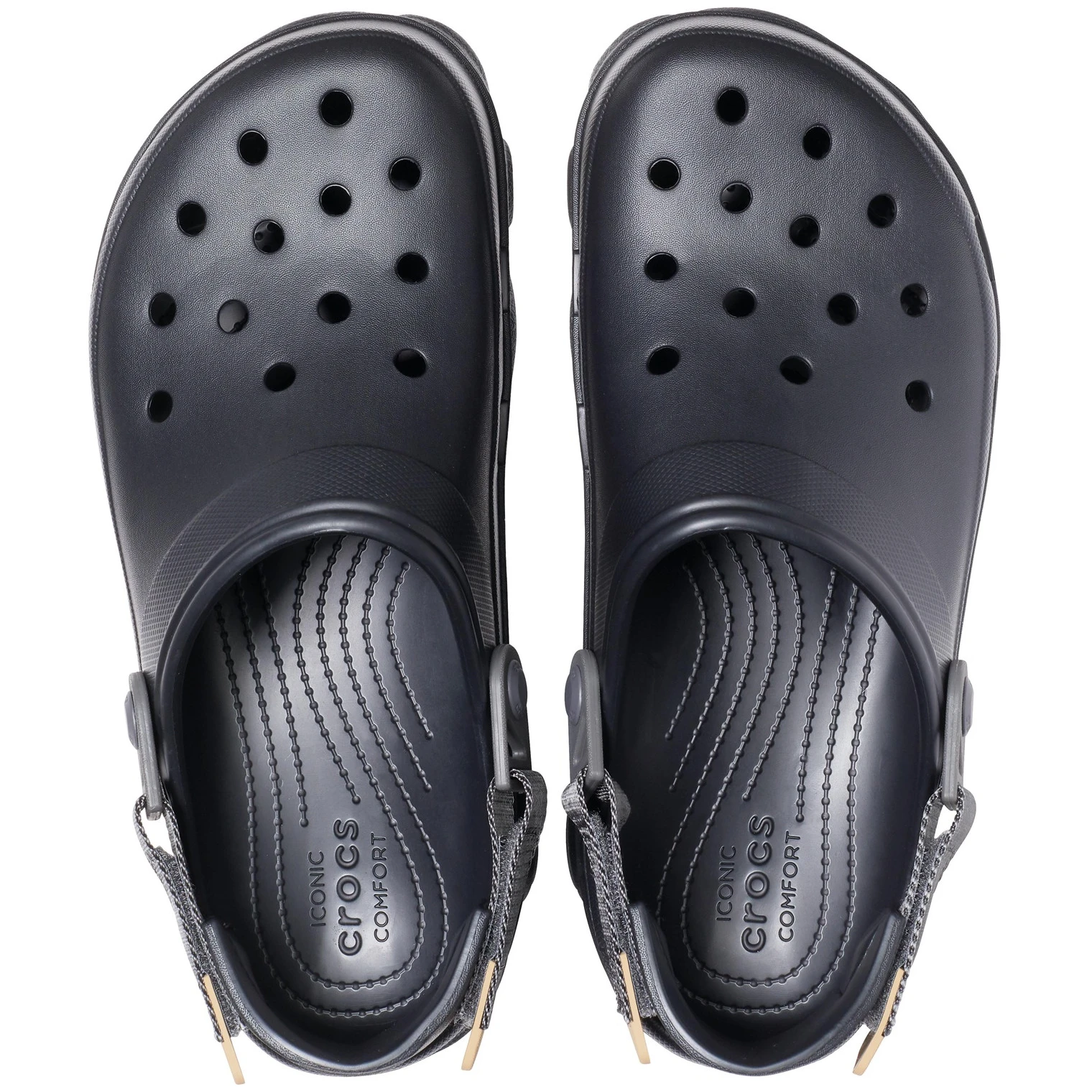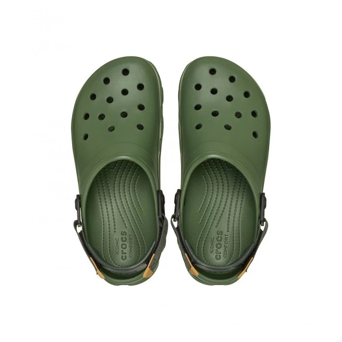 Crocs All Terrain Clog чехлите са проектирани за пътуване, експедиции и труден терен. Издръжливата подметка с дълбок грайфер осигурява стабилност и сцепление, докато регулируемата Turbo Strap държи крака здраво на място. Леките и напълно формовани Croslite™ пяна горни части осигуряват комфорт и лесна поддръжка – просто изплакнете и изсъхват бързо. Вентилационните отвори подпомагат циркулацията на въздуха и отвеждането на вода, а възможността за добавяне на Jibbitz™ аксесоари позволява на всеки да ги персонализира.