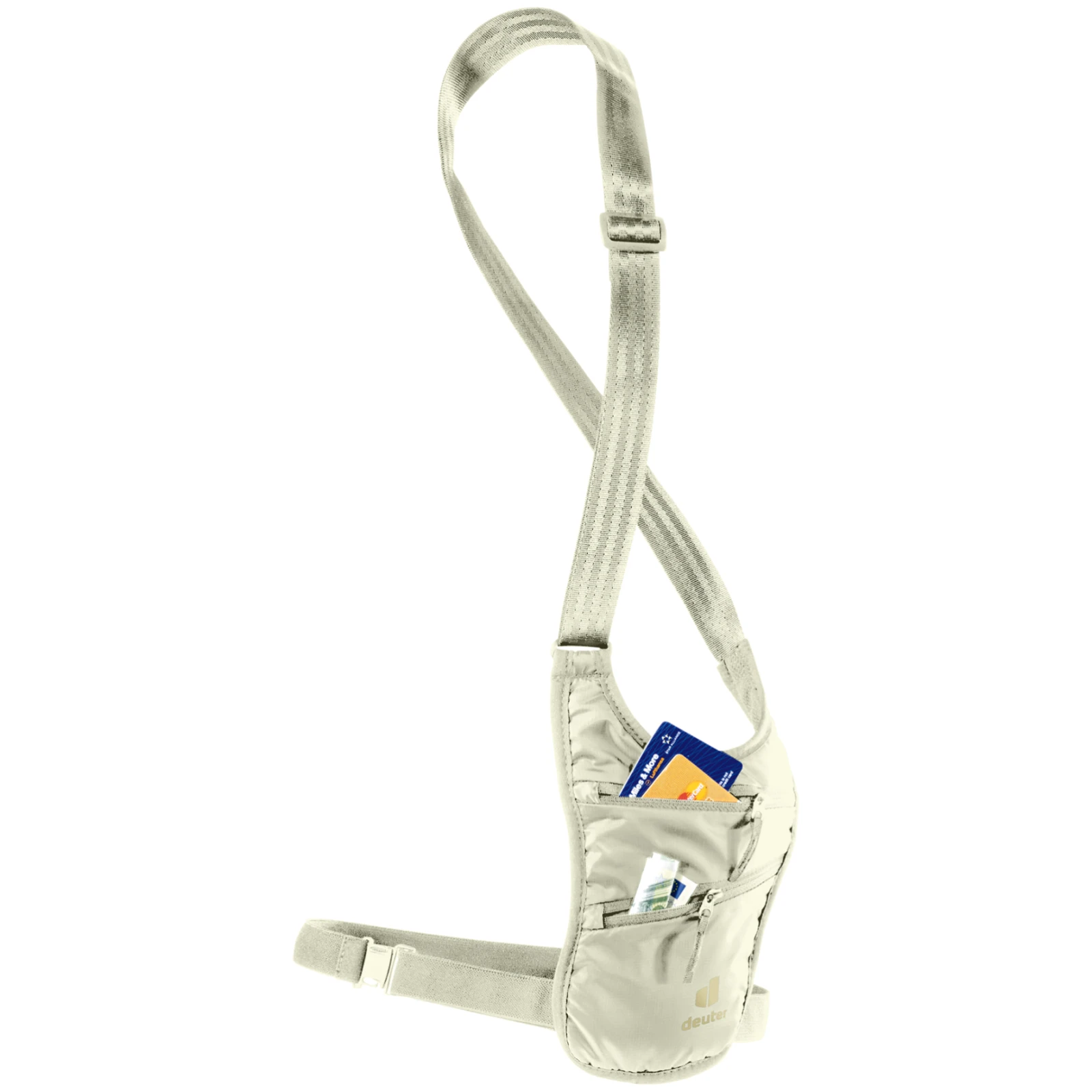 Защитното кобурче Deuter Security Holster осигурява надеждна защита на вашите документи, пари и други ценности. Благодарение на мекия, дишащ материал, е приятен за носене директно върху тялото. Два джоба с цип и вътрешно мрежесто отделение позволяват прегледно съхранение на всички необходими вещи. Регулируемата презрамка гарантира удобно приспособяване според вашите нужди – можете да го носите през рамо, на гърдите или под ризата.