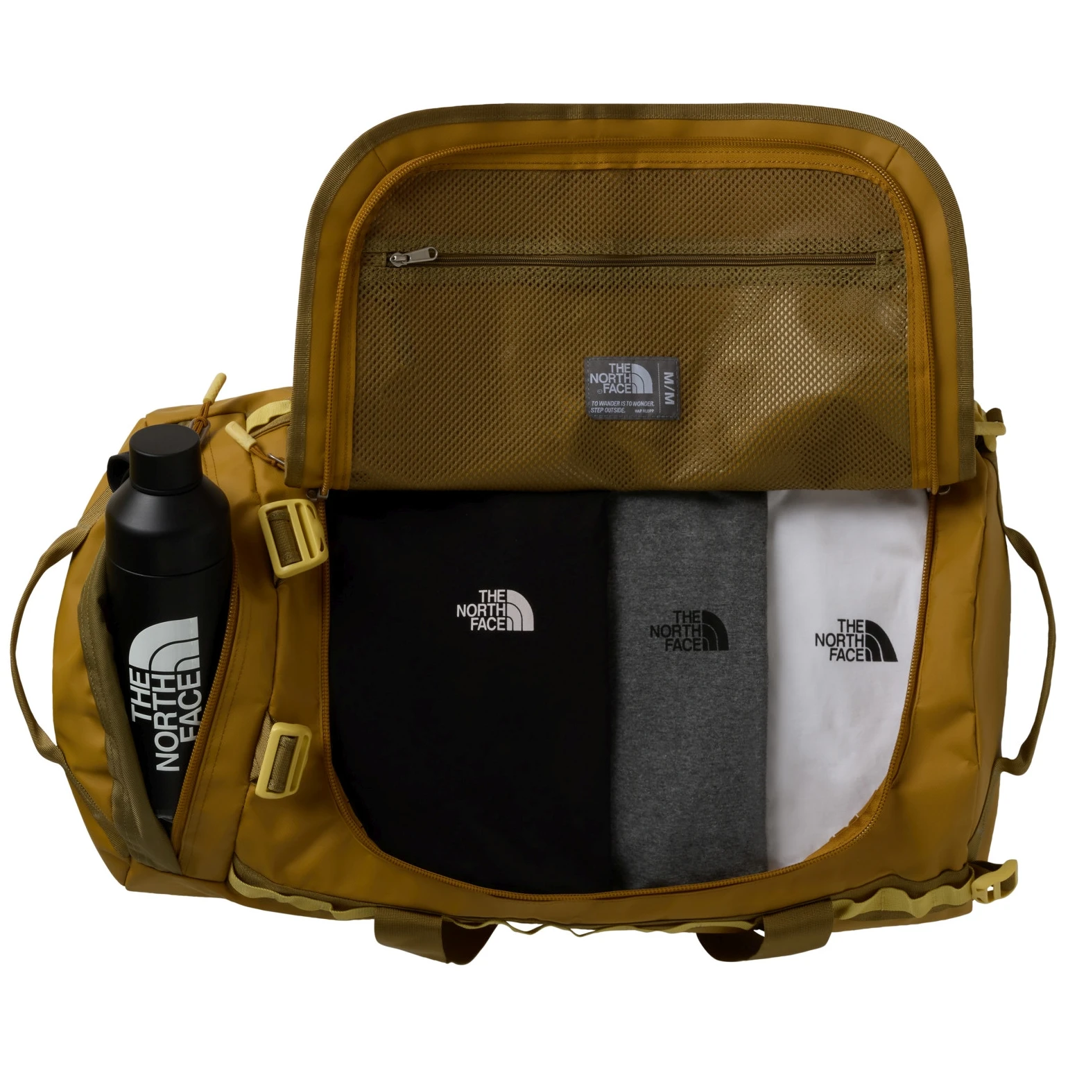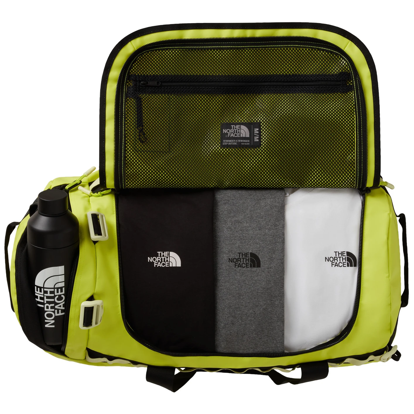 The North Face Base Camp Duffel - M е изключително издръжлива пътна чанта с обем 71 литра. Моделът следва успешния модел Duffles от предходните години, но качеството на материала и функционалността са подобрени. Основното отделение е достъпно през капак с издръжлив цип, а вътре ще намерите вътрешен мрежест джоб с органайзер. Чантата е оборудвана с водоустойчив джоб, в който можете да съхранявате и мокри дрехи или обувки, четири компресионни ремъка, дръжки за носене в ръце и ергономични презрамки за удобно пренасяне на гръб.