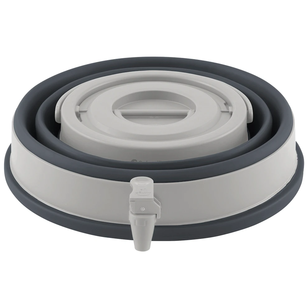 Контейнерът за вода Collapse Water Carrier на датската марка Outwell е идеалният аксесоар за достъп на питейна вода на Вас и Вашите деца. Вместимостта му от 12 литра е достатъчна за целия ден и може да се използва например за приготвяне на сок за детски партита. Когато нямате нужда от него, просто го сгънете с размери 37 x 32 x 8,5 cм и го приберете, за да не заема излишно място. Контейнерът е снабден с дръжка за лесно пренасяне, капачка с резба, която предпазва от замърсяване течността, но също така позволява лесно пълнене и измиване, и канелка, благодарение на която се улеснява преливането на напитката.