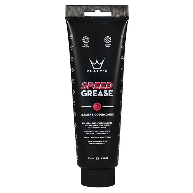 Скоростната грес на Peaty осигурява дълготрайна работа при екстремно налягане. Идеален за използване на движещи се части. Продуктът е предназначен за професионална употреба само в напълно запечатани части. Скоростната грес е съвместима с всички минерални и синтетични масла с изключение на продукти на базата на PAG (полиалкилен гликол).