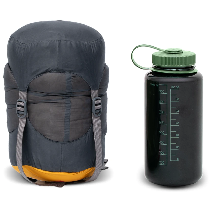Спалният чувал разполага и с регулируема еластична корда за кръста, която осигурява допълнителна изолация, когато сте седнали в спалния чувал, както и с примки за окачване. Материалите не съдържат PFAS, а в случай на пуха, сертификатът Responsible Down Standart гарантира добри условия при отглеждането на животните.