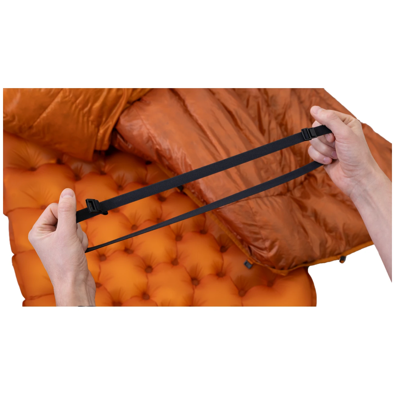 Разбира се, има качествен цип по цялата дължина със защита против закачане. Външният ripstop материал е здрав и устойчив на механични повреди. Няколко точки за закрепване с еластични кантове държат завивката чудесно към постелката.