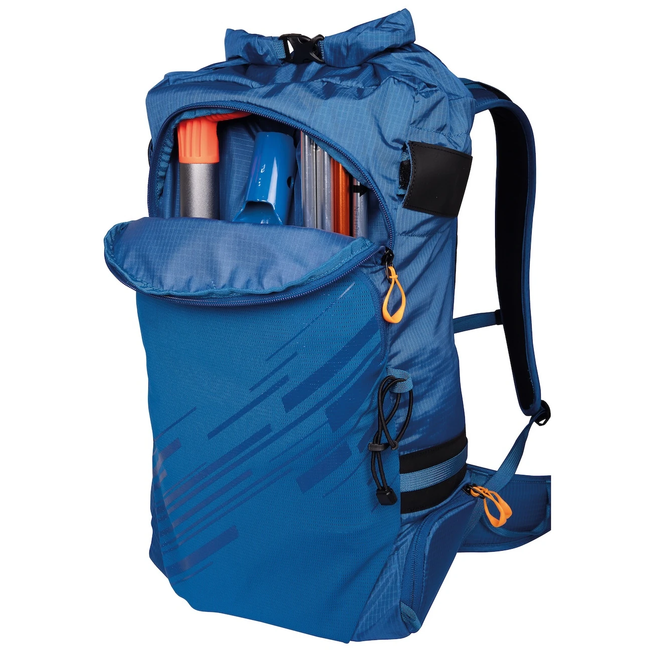 До раницата можете да стигнете с помощта на навиващ се капак с вътрешно затягане и с широк отвор Full BackDoor. Вътре има джоб за хидратиращ сак, вътрешен джоб с карабинер за ключове. Еластичният преден джоб позволява съхранение на мокри вещи.