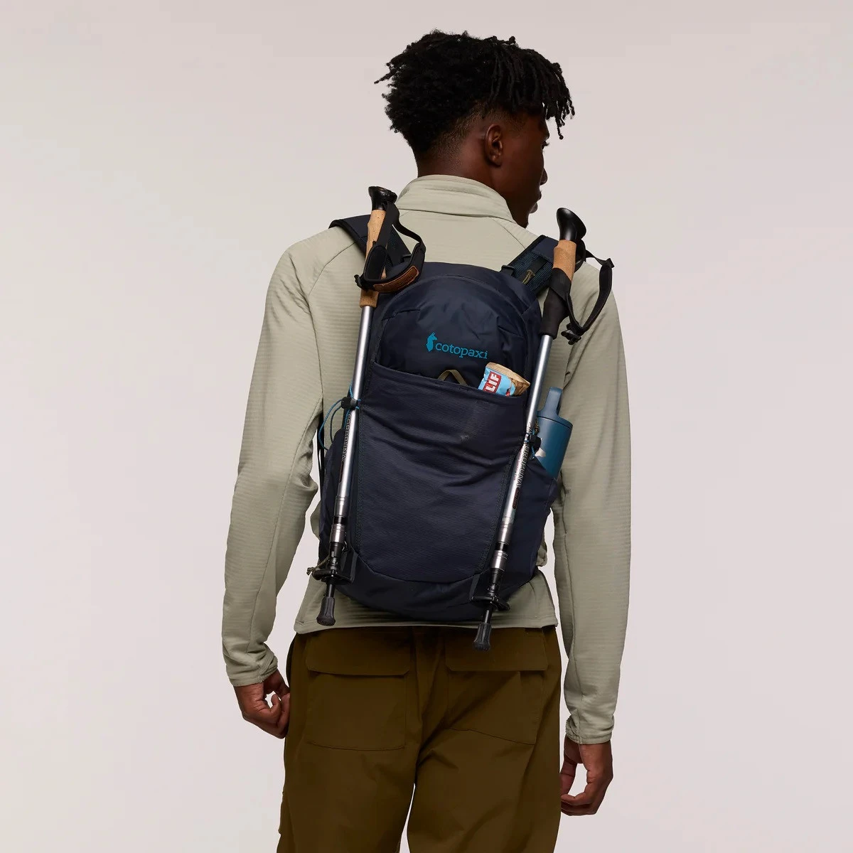 Раницата Elqui 24L Backpack от марката Cotopaxi побира всичко необходимо за еднодневна екскурзия в планината. Раницата е изработена от рециклиран найлон, издръжлива и същевременно лека, с удобна EVA пяна, мрежест заден панел и отстраняем колан за кръста. Останете хидратирани по време на похода благодарение на вградения джоб за хидратиращ резервоар и използвайте примките за трекинг щеки, когато не ви трябват. Телефонът може да се съхранява в бързо достъпни джобове или в еластичен мрежест джоб на предната част на раницата.