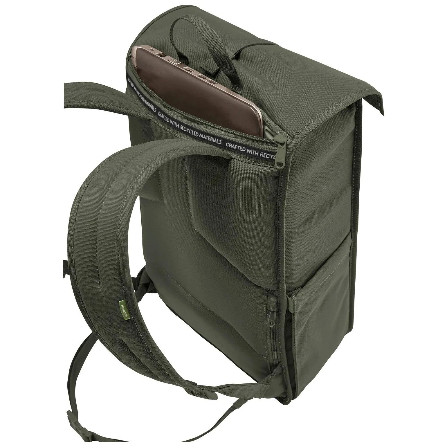 Материята е издръжлива, водоотблъскваща и направена от рециклирани PET бутилки с покритие Eco Finish без PFC. Това означава не само дълъг живот, но и по-нисък екологичен отпечатък. Сертификатите VAUDE Green Shape и bluesign® потвърждават щадящото производство към хората и природата.