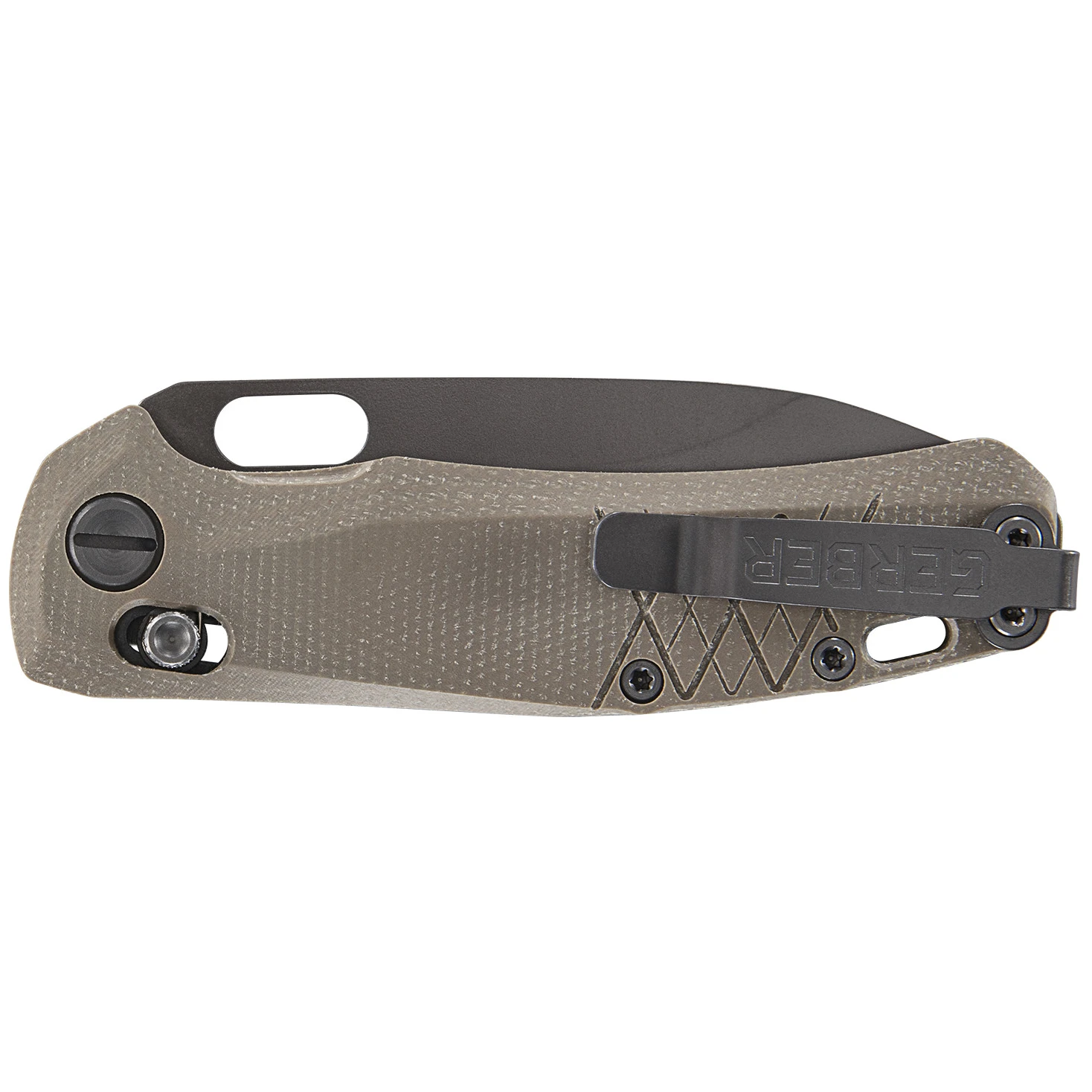 Джобният нож Gerber Scout е с гладко острие, което се затваря и е обезопасено при отваряне с бутон Pivot Lock. Ножът може лесно да се отваря и затваря с една ръка благодарение на двустранното заключване с бутон и практичния отвор в острието. Острието Drop Point е изработено от здрава стомана 440А и има тъмно PVD покритие за по-голяма устойчивост на корозия.