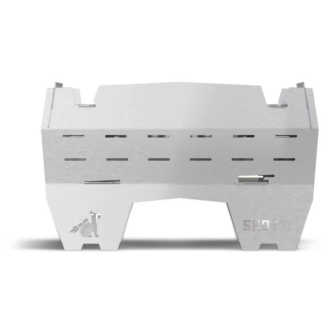 Конструкцията от 3 мм неръждаема стомана издържа на често сгъване, температурни промени и влажно време. Отделните панели пасват точно един към друг, така че монтажът отнема по-малко от минута. След разглобяване можете да съхраните всички части в издръжлива, водоустойчива чанта, която е включена в комплекта. Благодарение на широката съвместимост, мини може да се използва не само с решетка, но и с обикновени тигани, малки тенджери или чаши.