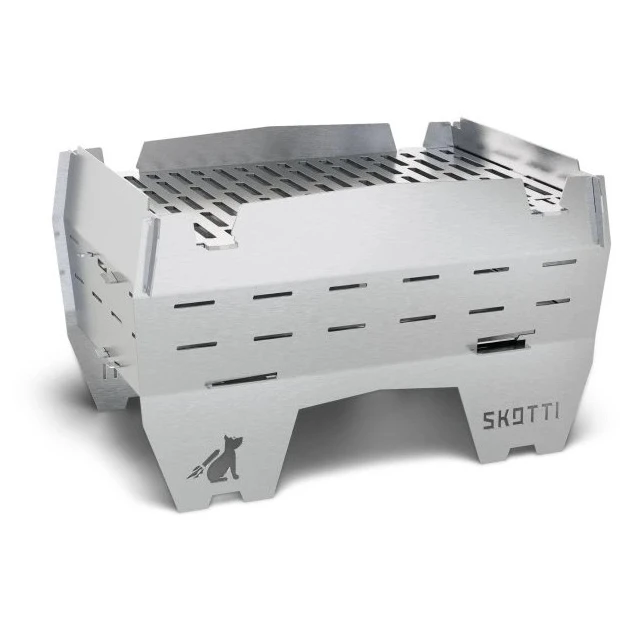 Grill Mini е компактен грил от марката SKOTTI, който представлява идеално решение за всеки, който иска да готви удобно и чисто по време на къмпинг, излети до водата или в природата. Благодарение на компактните размери, той е чудесен и за грил на балкона или терасата. С тегло само от 1,9 кг, напълно разглобяема конструкция и дебелина след сгъване 2,5 см, грилът лесно се опакова в раница или туристическа раница.