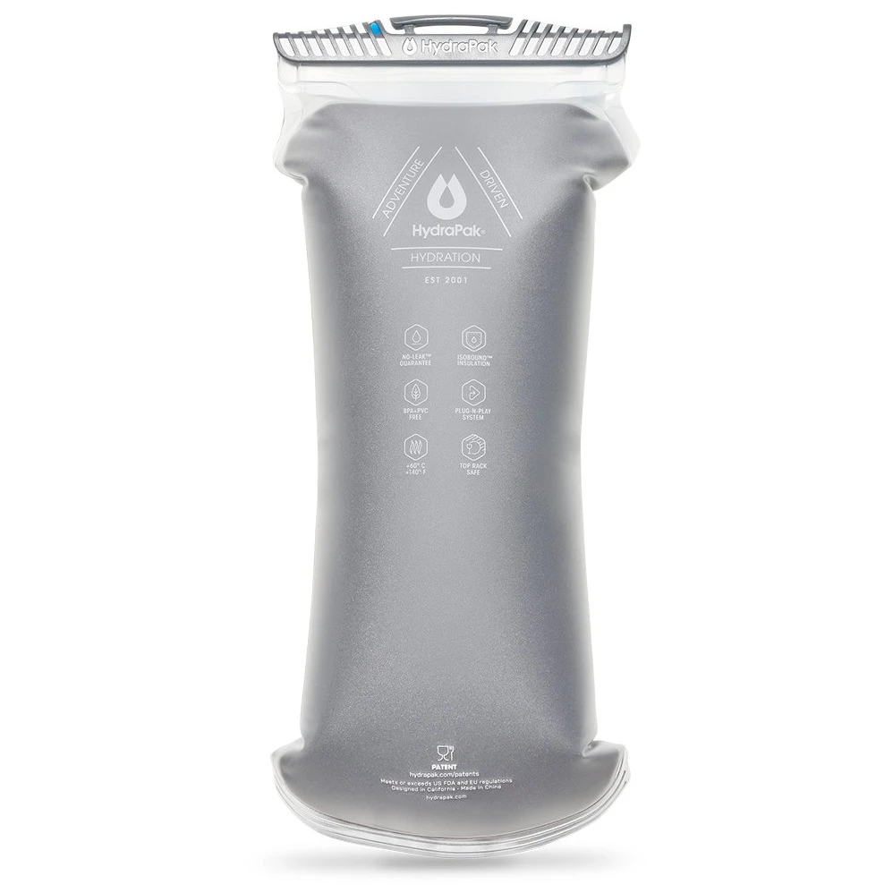 Дори когато е пълен, резервоарът запазва тясната си форма и не притиска никъде в раницата. Той е проектиран така, че да няма изтичане на вода при пълнене, пиене, носене или работа. Почиства се лесно благодарение на големия входен отвор, който е подходящ и за пълнене с лед и може да се обърне напълно и да се мие в съдомиялна машина. Може да се използва за студени и топли течности до 60°C.