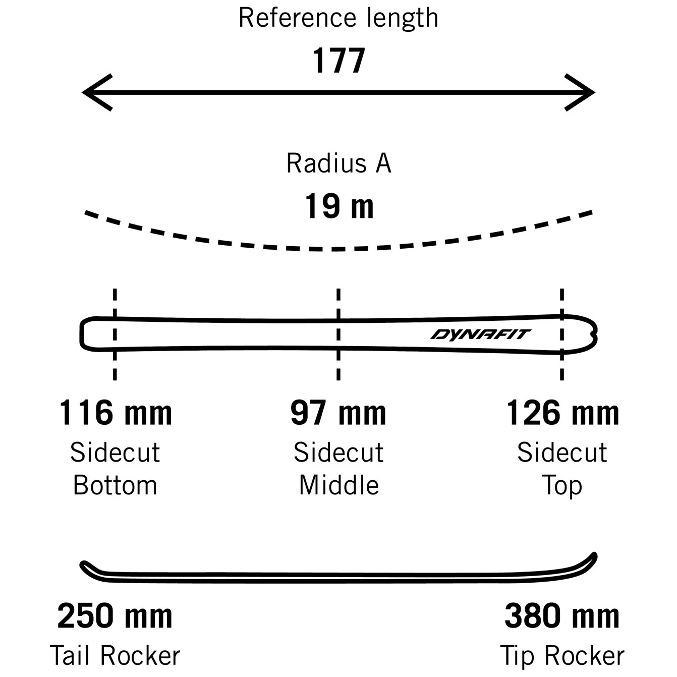 Игриви, пъргави и въпреки това много стабилни, това са ските Radical 97, които ще разтуптят сърцата на ентусиастите на ски спускането. Осигурява чисто забавление на ски в снега при всякакви условия. Леката конструкция със 100% тополов сърцевина и доказаните карбонови подсилвания DYNAFIT speed Ви позволяват да спестите ценна енергия при изкачване. Модерният дизайн и новоразработеният рокер на върха и петата превръщат тази ски в перфектен спътник за недокоснат пухкав сняг. Дори и в трудни ски условия или с тежка раница, ще запазите пълен контрол и ще направите перфектни завои. Леко повдигнатият връх осигурява по-добро започване на завоя и лесно изплуване. Пълните странични стени гарантират директен пренос на сила към кантовете за най-добра производителност и стабилност на мек и твърд сняг.